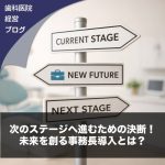 今の停滞感は、先生が一人で全てを背負い、頑張りすぎてきた証拠です。院長先生の時間は有限です。その時間を、誰にでもできる事務作業や、精神を削る人間関係の調整に使い続けるのは、医院にとって最大の損失ではないでしょうか。
