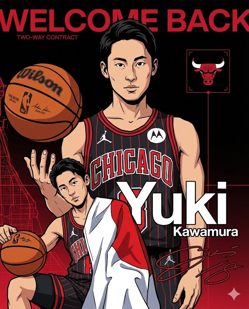 先日、河村くんがNBA ブルズデビューを果たしました。