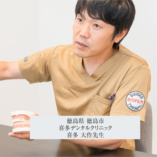 退職者が続き、かつてはチェア7台に対しスタッフわずか7名という状況に。スタッフが健康で成長できる環境とは何なのかを考えを“時短”を決意。その他にも人事評価制度の導入など、スタッフファーストの取り組みを実施。現在では歯科医師5名・衛生士9名・総勢25名の体制へと成長。さらに予防棟を新設し、チェアは計14台に。徳島市最大規模を誇る歯科医院となり、医業収入も4億円を超えるスピードで急成長。いま や“徳島で知らない人はいない歯科医院”とまで言われる存在に。